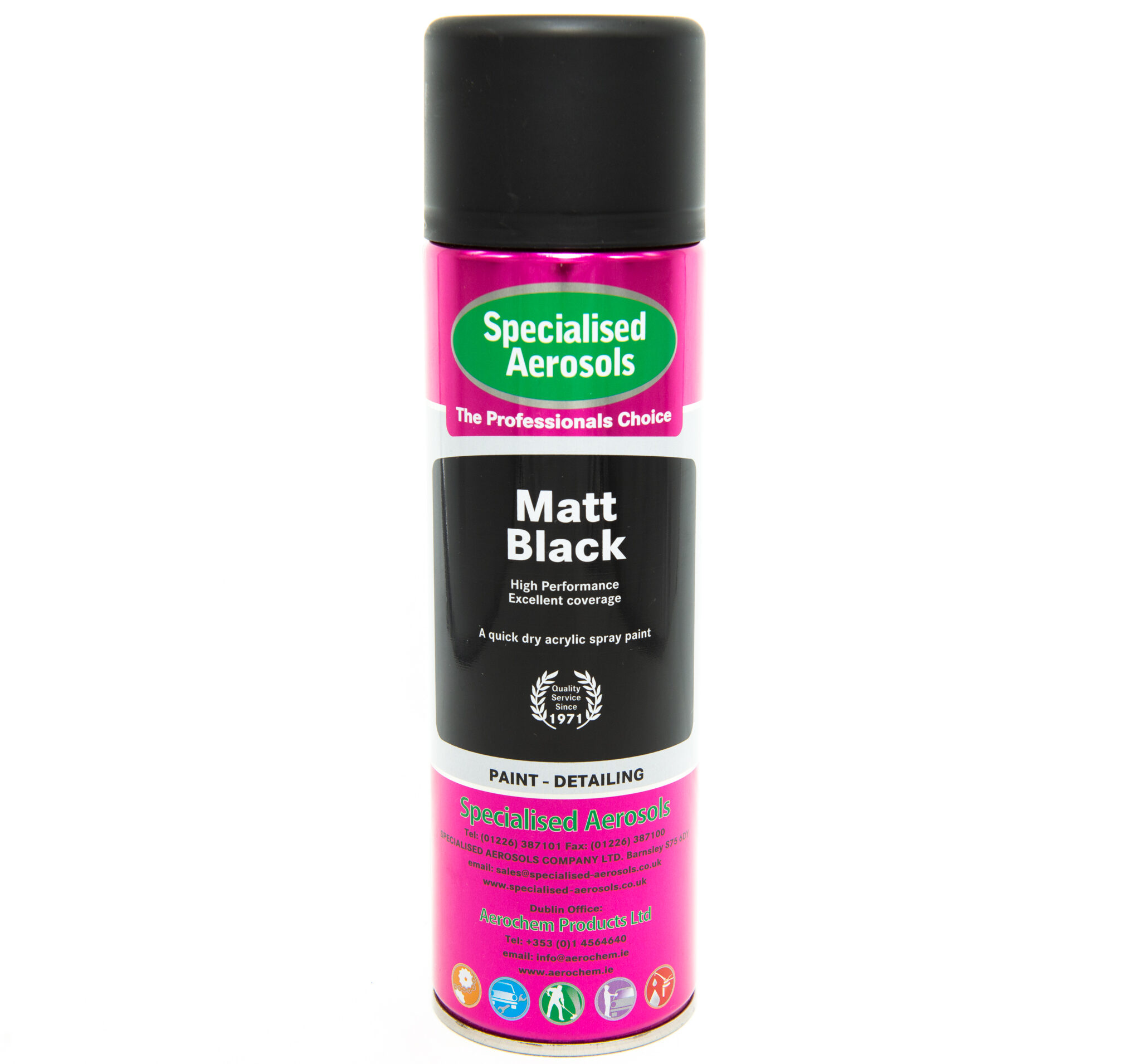 Oilswell Ltd & Specialised Aerosols Spray Matt Black paint is a tough acrylic paint offering a convenient alternative to conventional spray equipment, suitable for most applications in the automotive and general industrial areas, and compatible with most other paint systems.Give your projects a stylish, non-reflective finish with our high-quality matt black spray paint. This versatile aerosol provides a tough and durable coating that resists wear, chipping, and fading, ensuring a long-lasting, professional result.