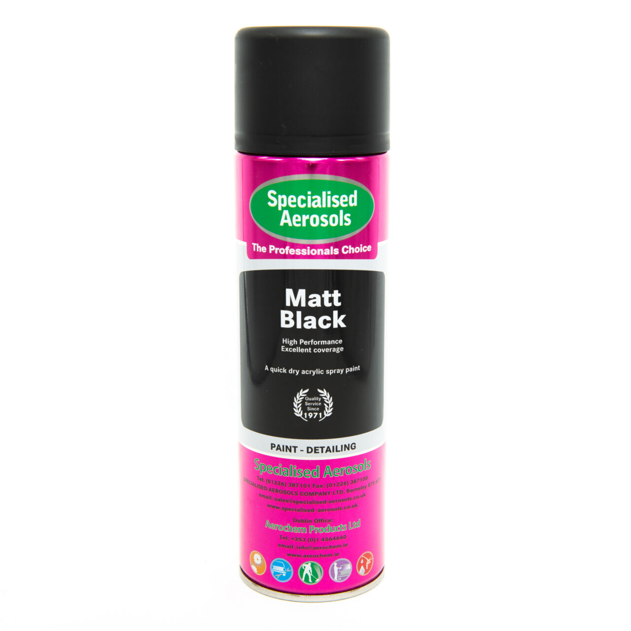 Oilswell Ltd & Specialised Aerosols Spray Matt Black paint is a tough acrylic paint offering a convenient alternative to conventional spray equipment, suitable for most applications in the automotive and general industrial areas, and compatible with most other paint systems.Give your projects a stylish, non-reflective finish with our high-quality matt black spray paint. This versatile aerosol provides a tough and durable coating that resists wear, chipping, and fading, ensuring a long-lasting, professional result.